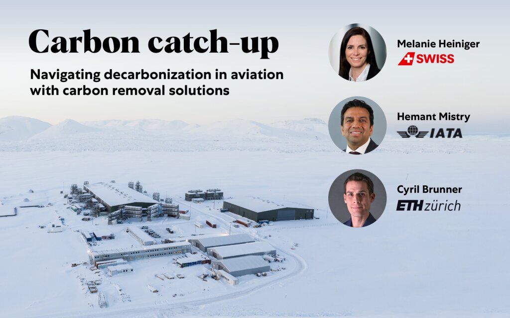 On June 4, Climeworks organized a webinar to discuss the role of carbon removal in the aviation decarbonization journey with Melanie Heiniger from SWISS, Hemant Mistry from IATA (International Air Transport Association), and Cyril Brunner from ETH (Federal Institute of Technology Zurich) moderated by Laurent Müller, Climeworks Director Strategic Partnerships Management.